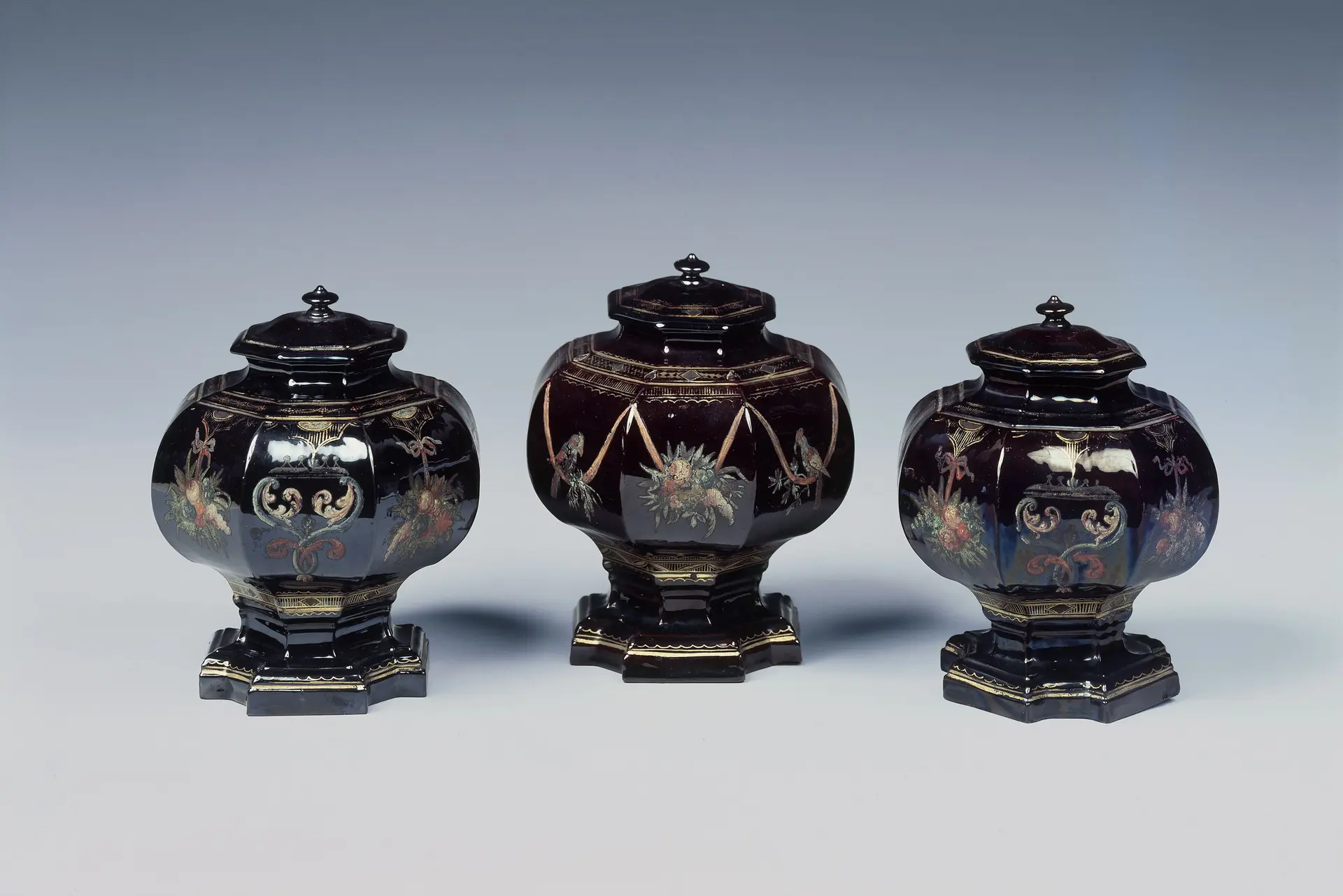 Meissener Deckelvasen und Becher aus Böttgerporzellan, um 1713–1723